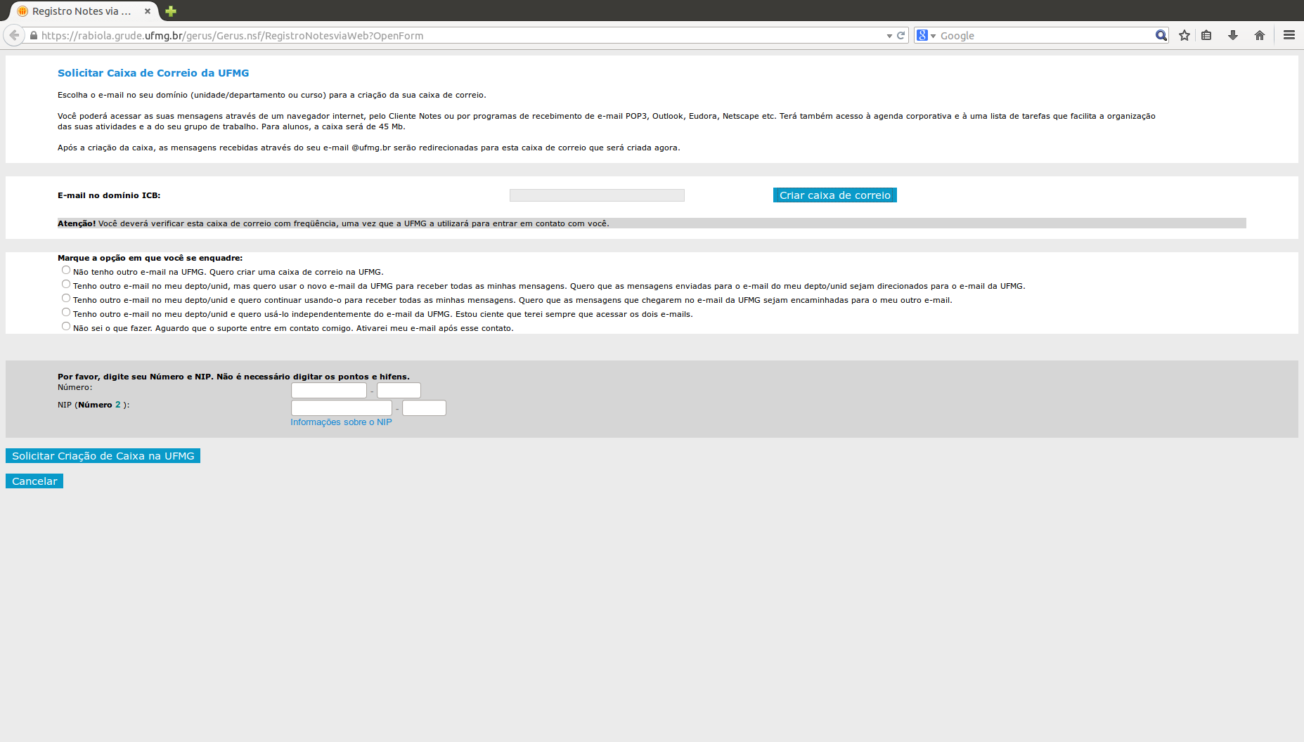 Voltar para informatica:migraremailparaminhaufmg